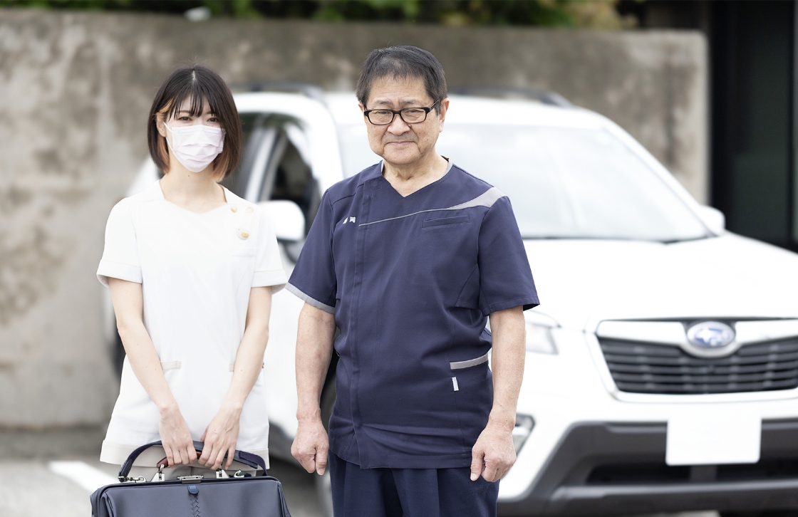 加齢や病状の進行により、通院が難しくなった方のために訪問診療を行っています。医師やスタッフがご自宅へお伺いし、診療を行います。身体だけでなく生活の悩みを丁寧に聞き取って、お一人おひとりにあった適切な診療を行います。